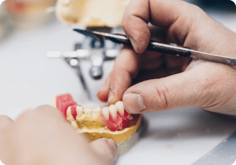 Retirada: A prótese é entregue pronta para acabamento, ajustes finais e personalização com a assinatura do dentista.