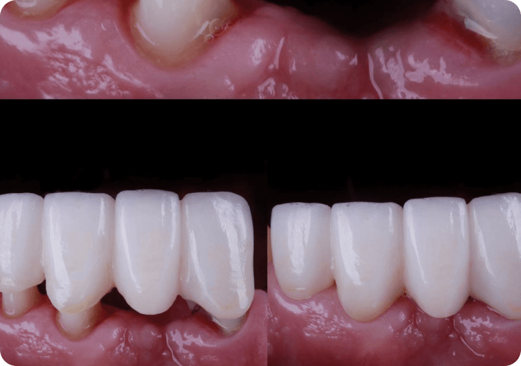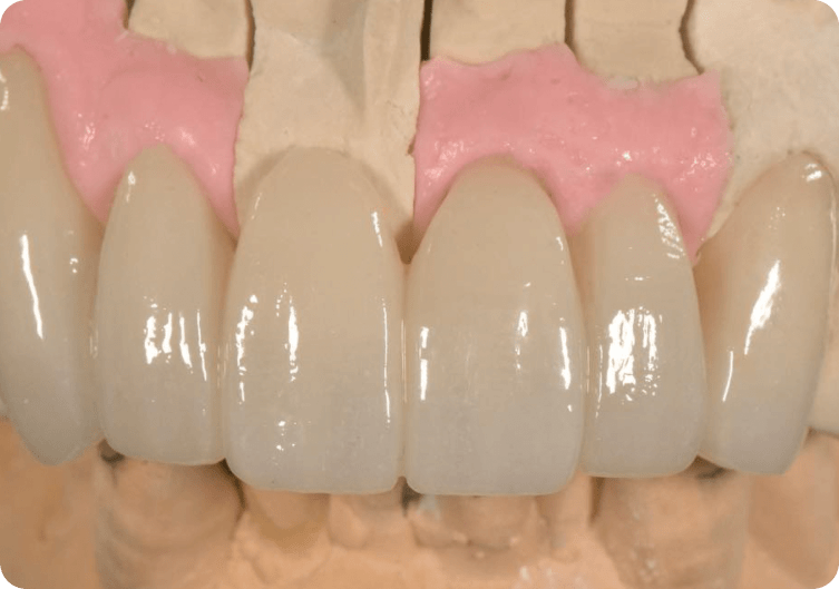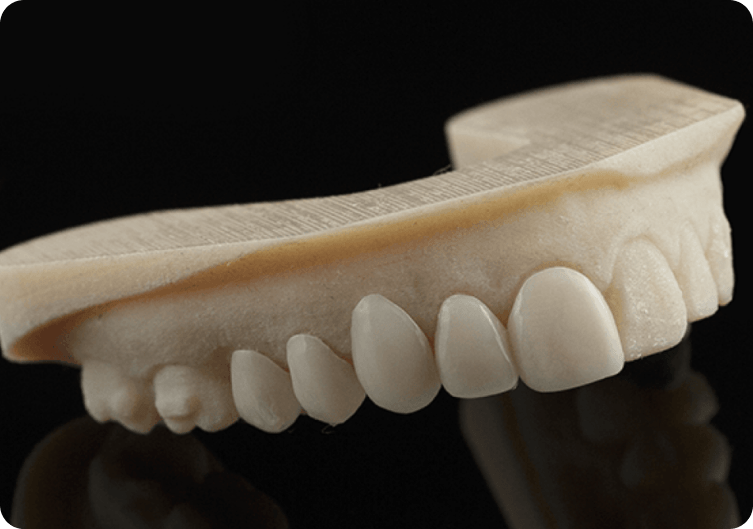 Coroas e pontes fixas produzidas em zircônia multilayer 3D ou 4D, unindo resistência, naturalidade e alta estética.